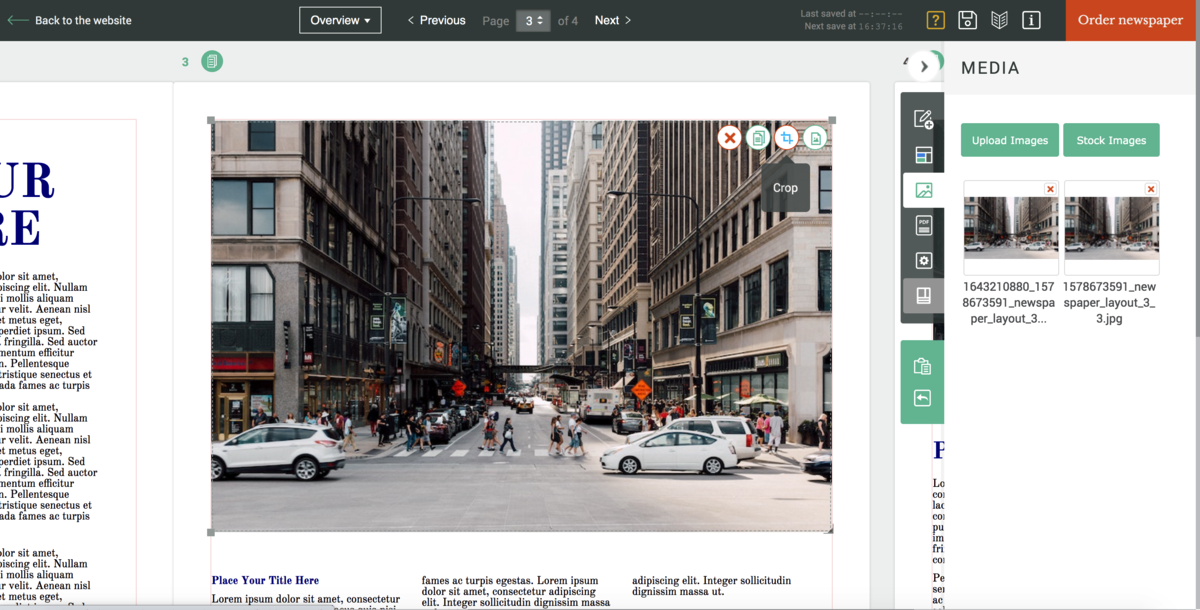 There are few extra things to consider for the front page of a newspaper. Your font page is the poster child of your newspaper. Besides your news articles, it’s also important to add the name of your paper, the logo, the date of publication, the edition number and the price. It’s also common practice to add snippets of other news-worthy articles that can be found later on in the newspaper.